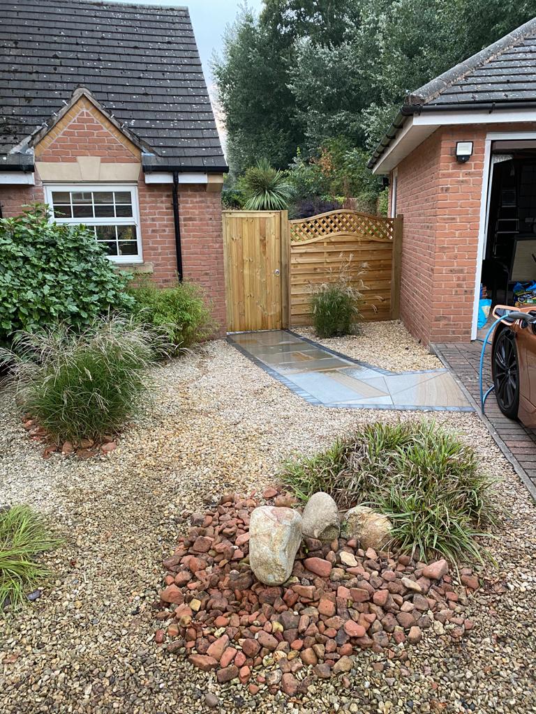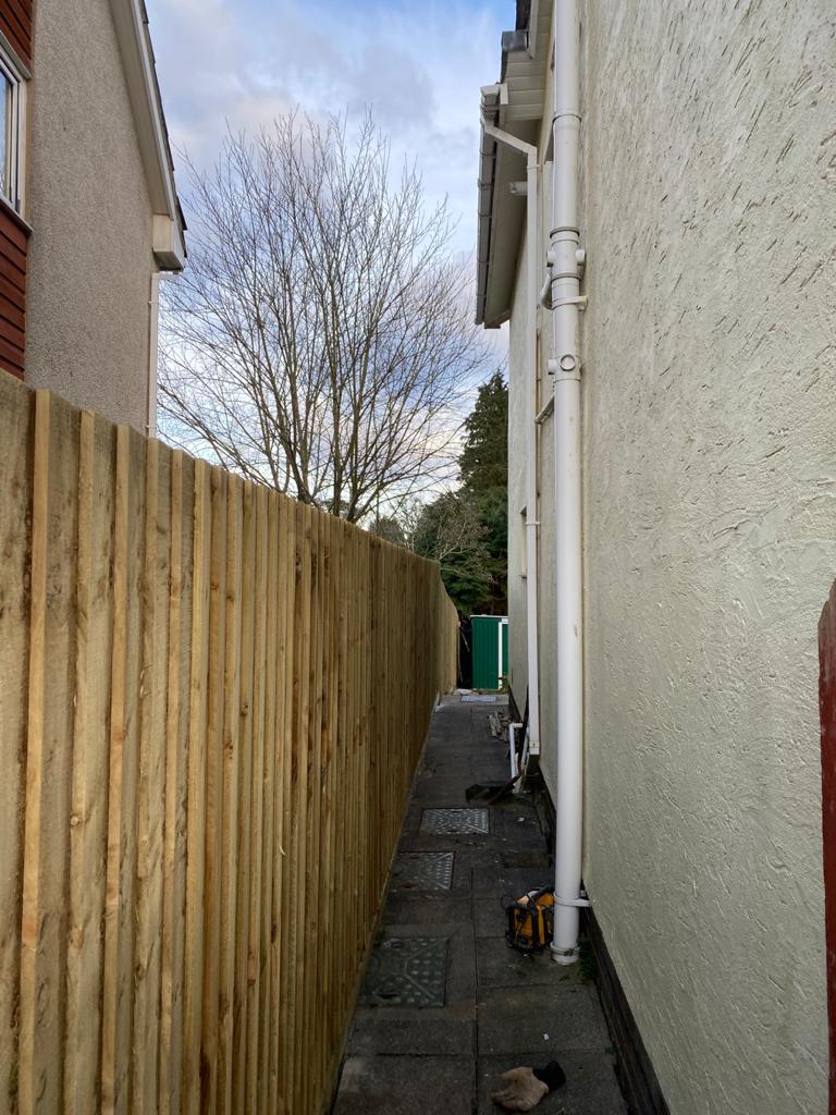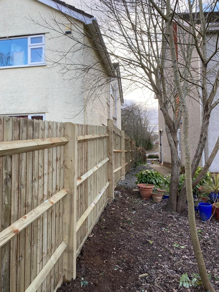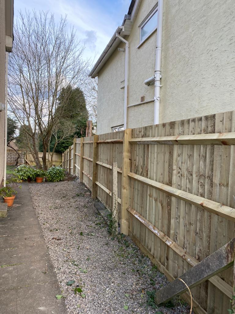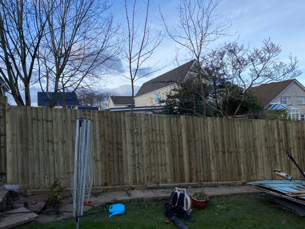 This is just one of the small fencing projects we did for one of our customers, finished with a purple slate edging, clean cut green grass and all hedging pruned and trees cut back.